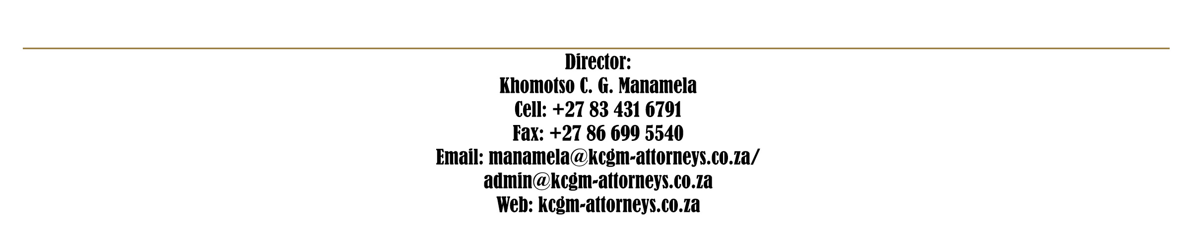 Welcome to KCGM Attorneys. On the 26 November 2018, Khomotso Cecil G. Manamela decided to establish a new generation and energetic law firm to practice under the name and style of KCG Manamela Attorneys (KCGM Attorneys). The firm is growing in step with South Africa’s development and burgeoning economy. A rich and firm foundation and well-established client base support the established firm.